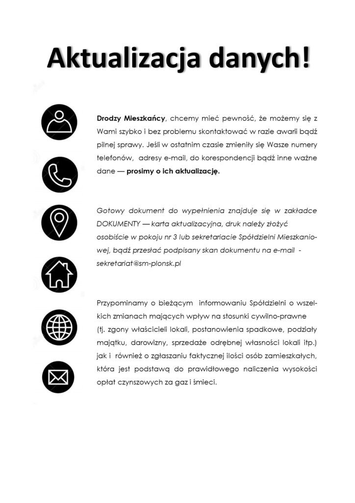 Szanowni Państwo! W dniu 27-10-2025 na wniosek Zarządu, Rada Nadzorcza Spółdzielni Mieszkaniowej w Płońsku podjęła uchwalę o podwyżce...